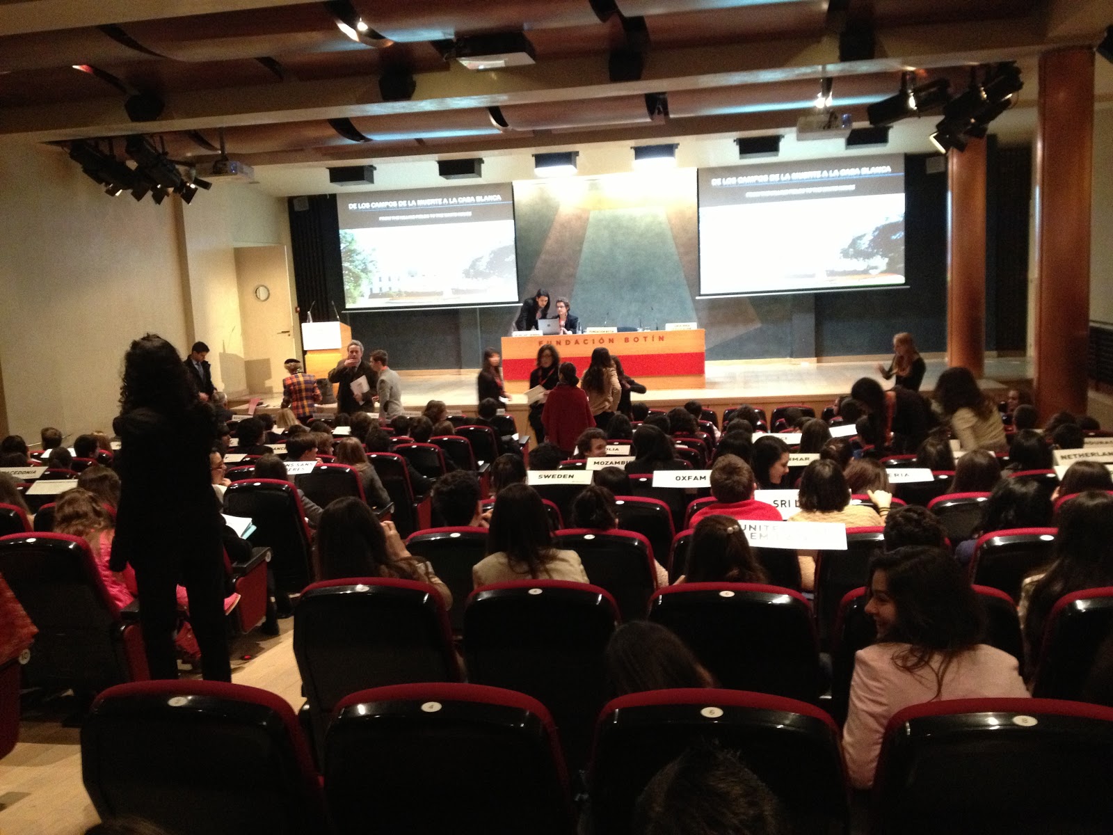 Well, they were and they weren’t.  For one thing, they were dressed up.  One of the most exciting parts of the conference, for the students, is the opportunity to wear fine business dress — in their suits, blazers, pencil skirts, they looked the part of young ambassadors.   But of course, the change was more than skin-deep.  The students’ growth in critical thinking skills throughout the course of the Global Classrooms program is astounding.  Between four mini-conferences (for our youngest students only), two regional conferences (in Torrelavega, Camargo, and Santander), and the «big show» at the Fundación Botín in Santander, our «delegations» took full advantage of the opportunity to speak, debate, and solve global problems in a public forum.
